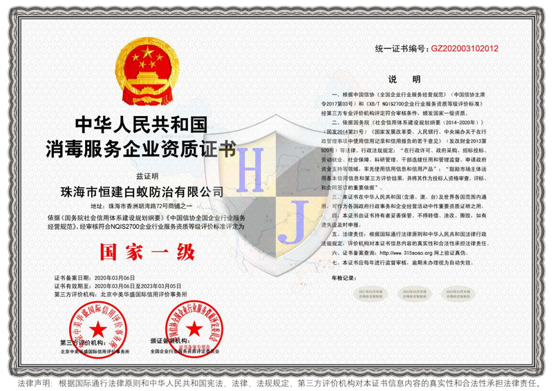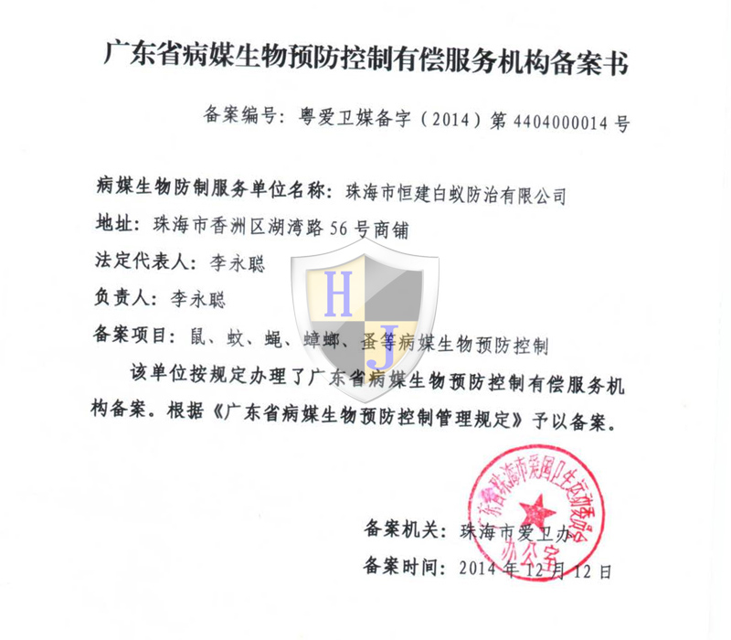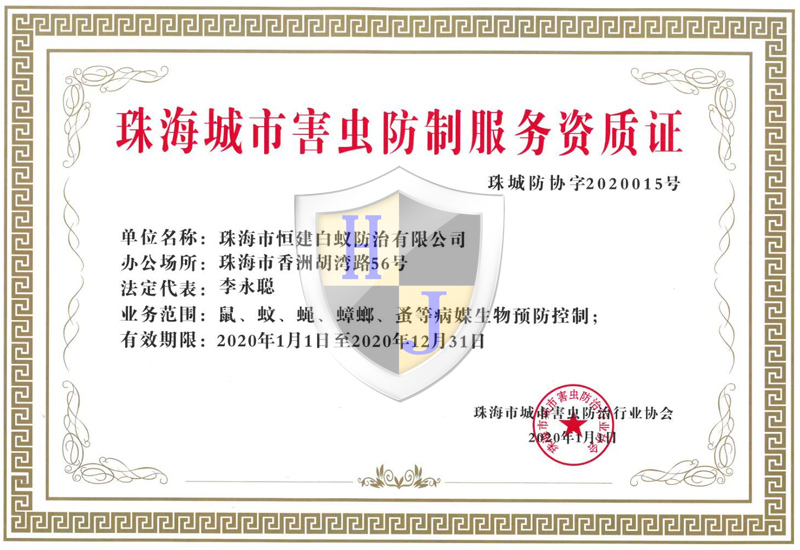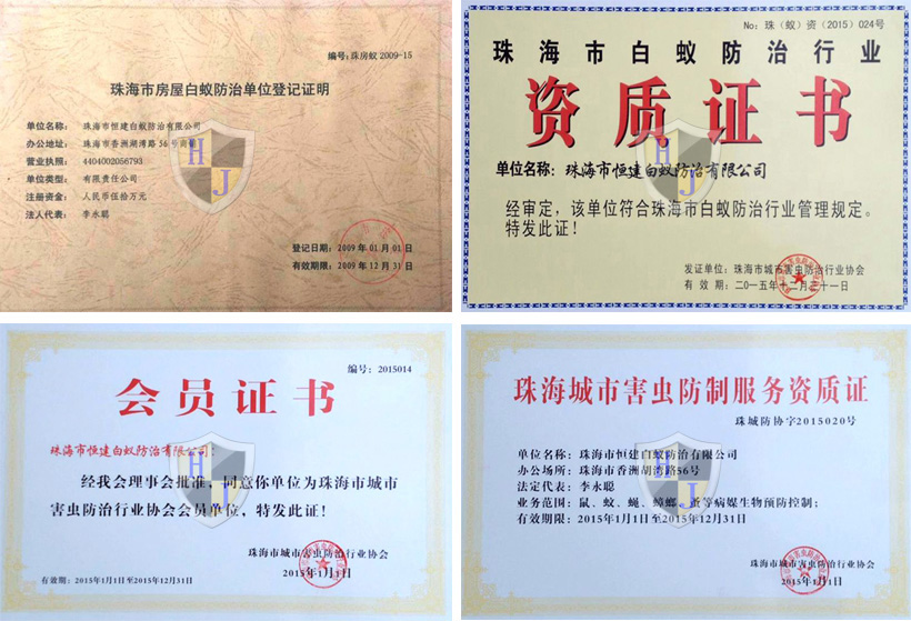 經(jīng)多年專注誠信經(jīng)營,公司獲得國家級有害生物防制A級資質(zhì)證書、國家級消毒一級資質(zhì)證書,通過廣東省病媒生物預(yù)防控制備案、市愛衛(wèi)辦頒發(fā)病媒生物備案證明、廣東省守信用重合同企業(yè)榮譽(yù)、城市蟲害行業(yè)等多項(xiàng)資質(zhì)。